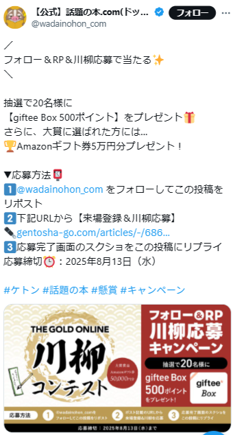 1️⃣@wadainohon_com をフォローしてこの投稿をリポスト