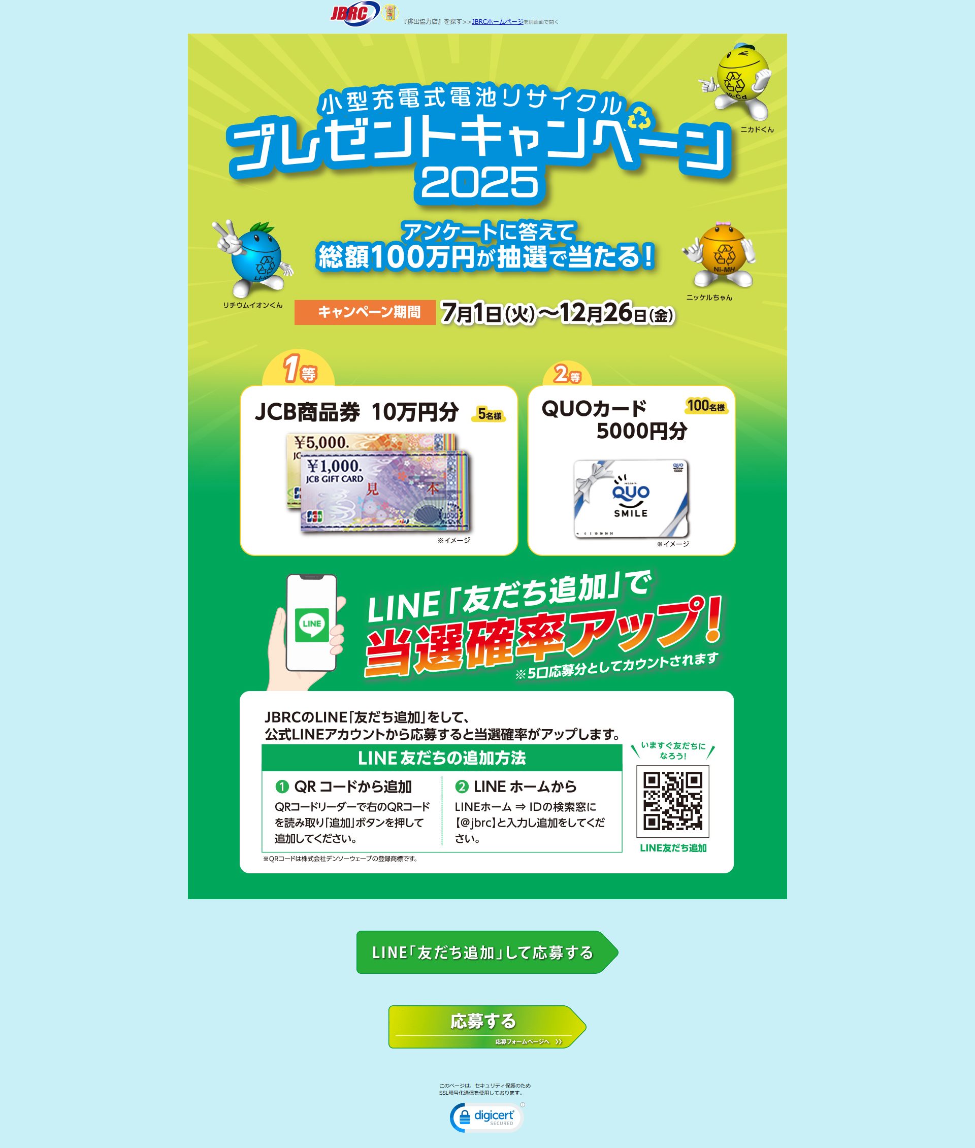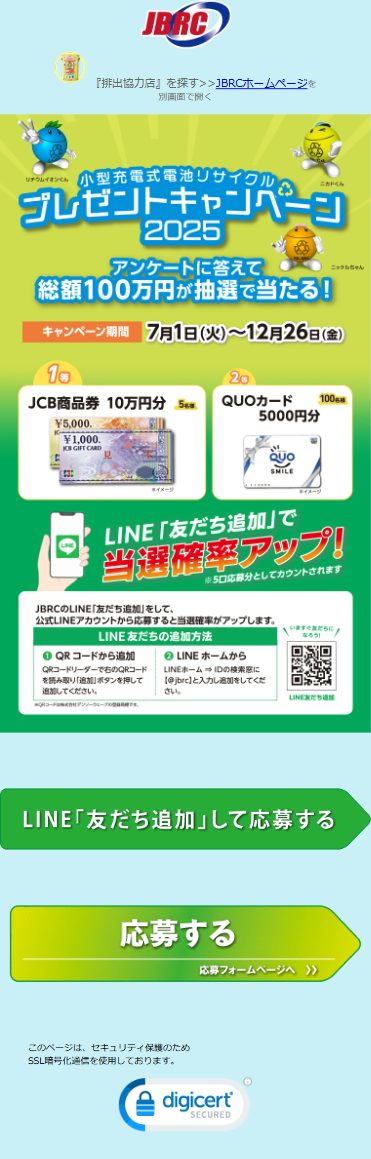 1等●10万円分のJCB商品券/5名様 2等●5,000円分のQUOカード/100名様 当選者が小中学生の場合、5,000円分図書券