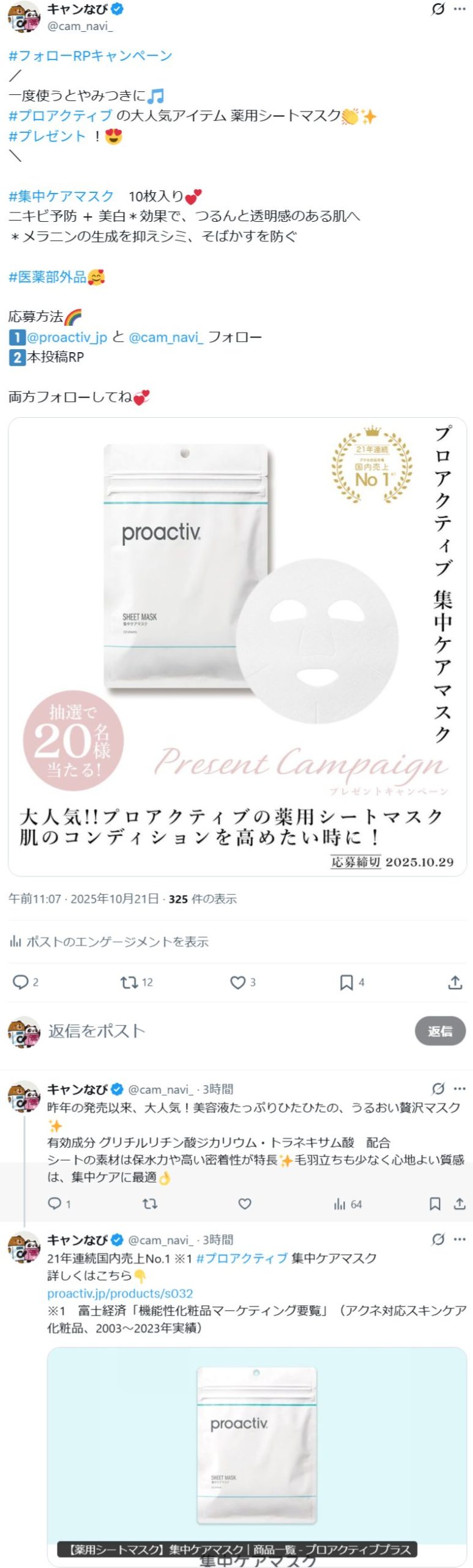 - プロアクティブ集中ケアマスクプレゼントキャンペーン