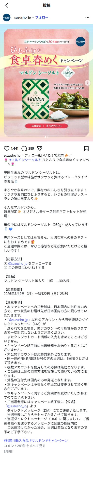- #マルドンシーソルト ひとふりで食卓春めくキャンペーン