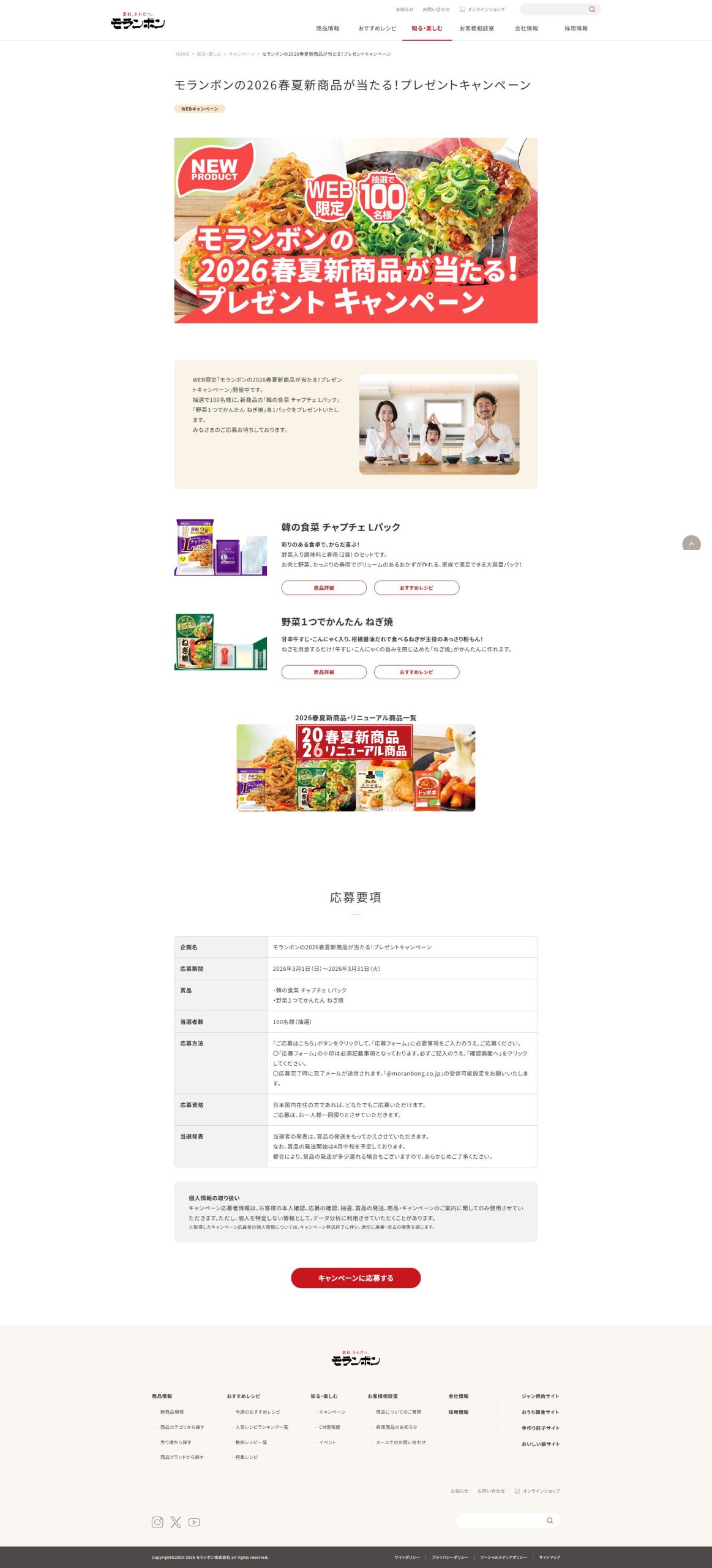 - モランボンの2026春夏新商品が当たる!プレゼントキャンペーン