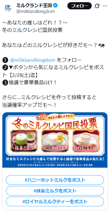 ❷▼ボタンから気になるミルクレシピをポスト【2/28(土)迄】