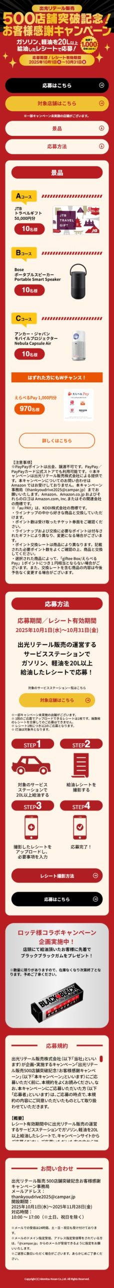 - 出光リテール販売 500店舗突破記念お客様感謝キャンペーン