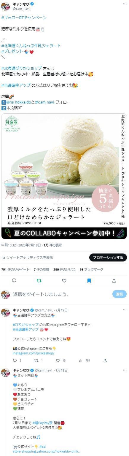 - 北海道くんねっぷ牛乳ジェラートプレゼントキャンペーン