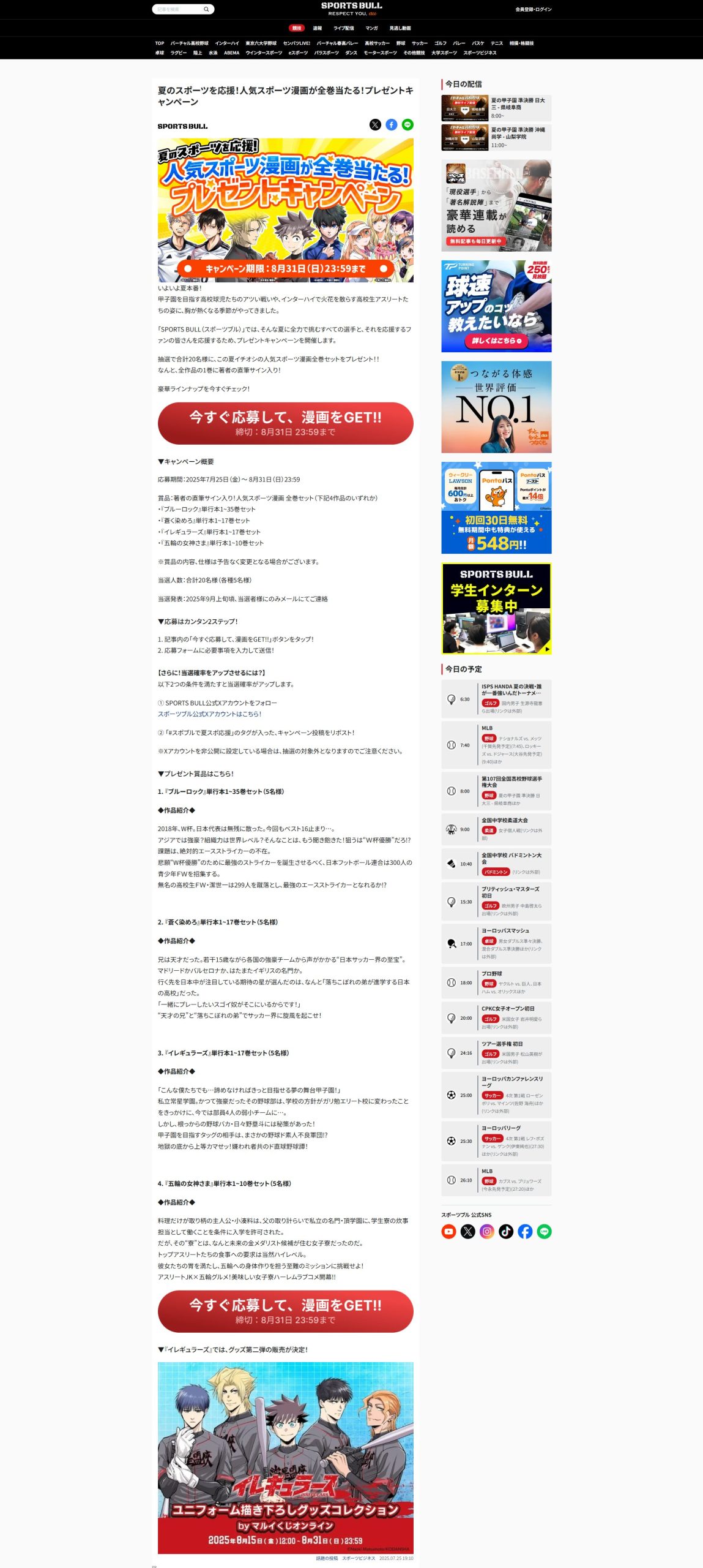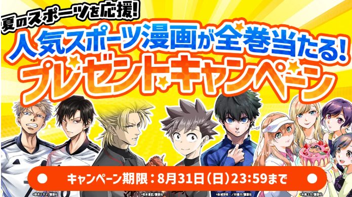 夏のスポーツを応援!人気スポーツ漫画が全巻当たる!プレゼントキャンペーン