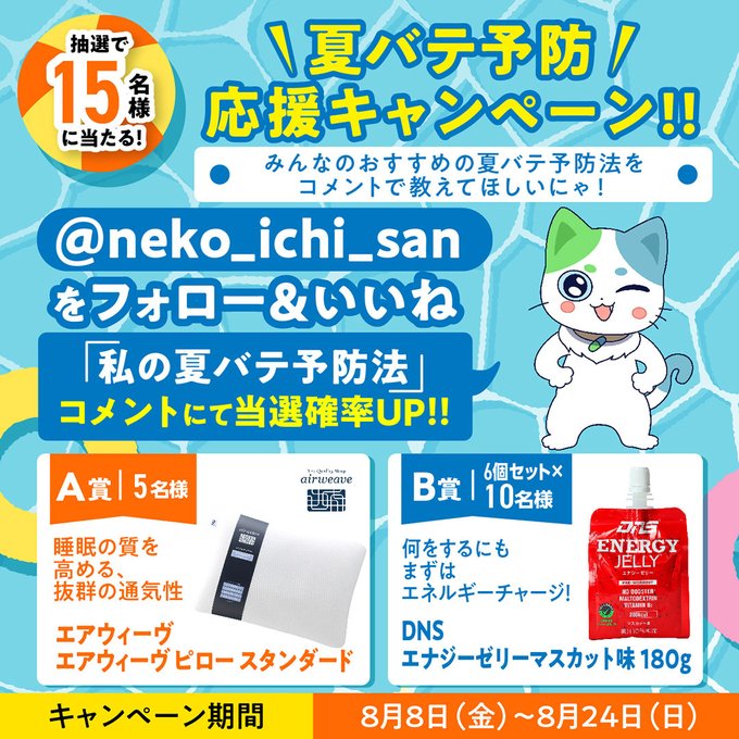 - ・エアウィーヴ ピロー スタンダード5名様 ・DNS エナジーゼリーマスカット味 180g 6個セット10名様