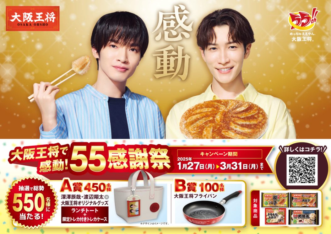 A賞:深澤辰哉・渡辺翔太×大阪王将オリジナルグッズ 450名様 B賞:大阪王将フライパン(24cm) 100名様