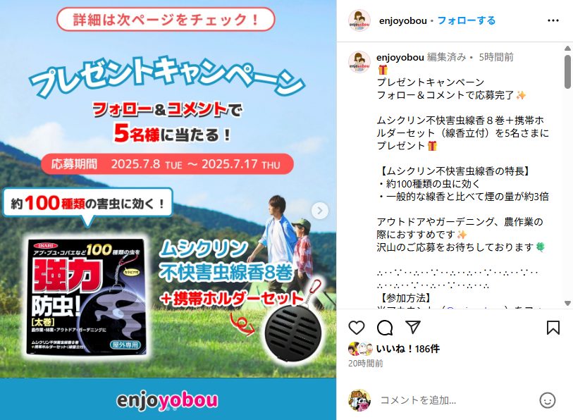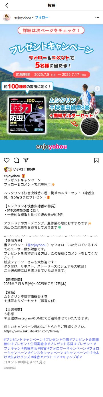 - 屋外用の不快害虫線香が当たる!Instagramキャンペーン