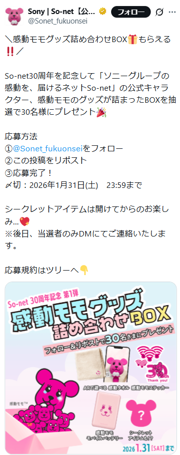 - 感動モモグッズ詰め合わせBOX プレゼントキャンペーン
