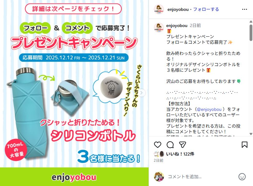 - 折りたためるシリコンボトルが当たる!Instagramキャンペーン