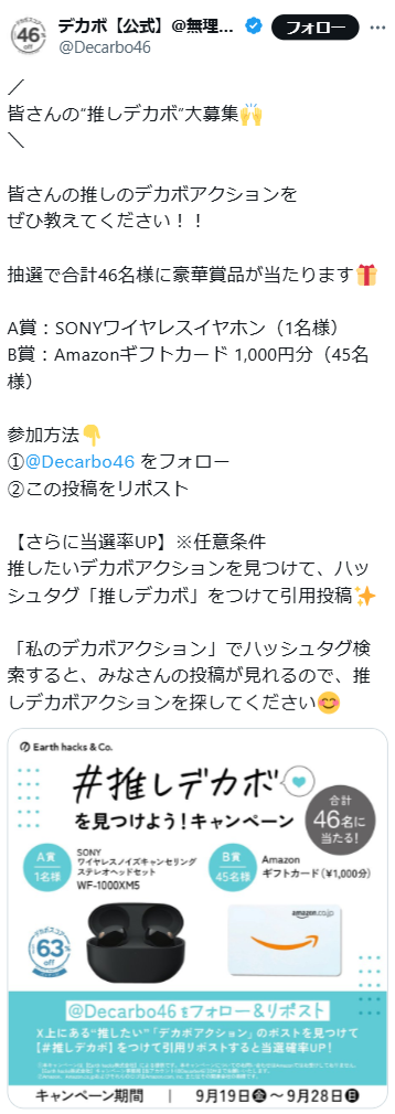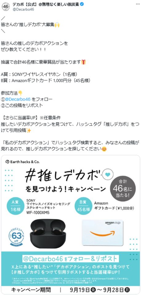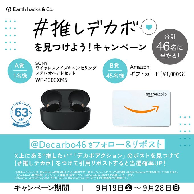 - A賞:SONYワイヤレスイヤホン(1名様) B賞:Amazonギフトカード 1,000円分(45名様)