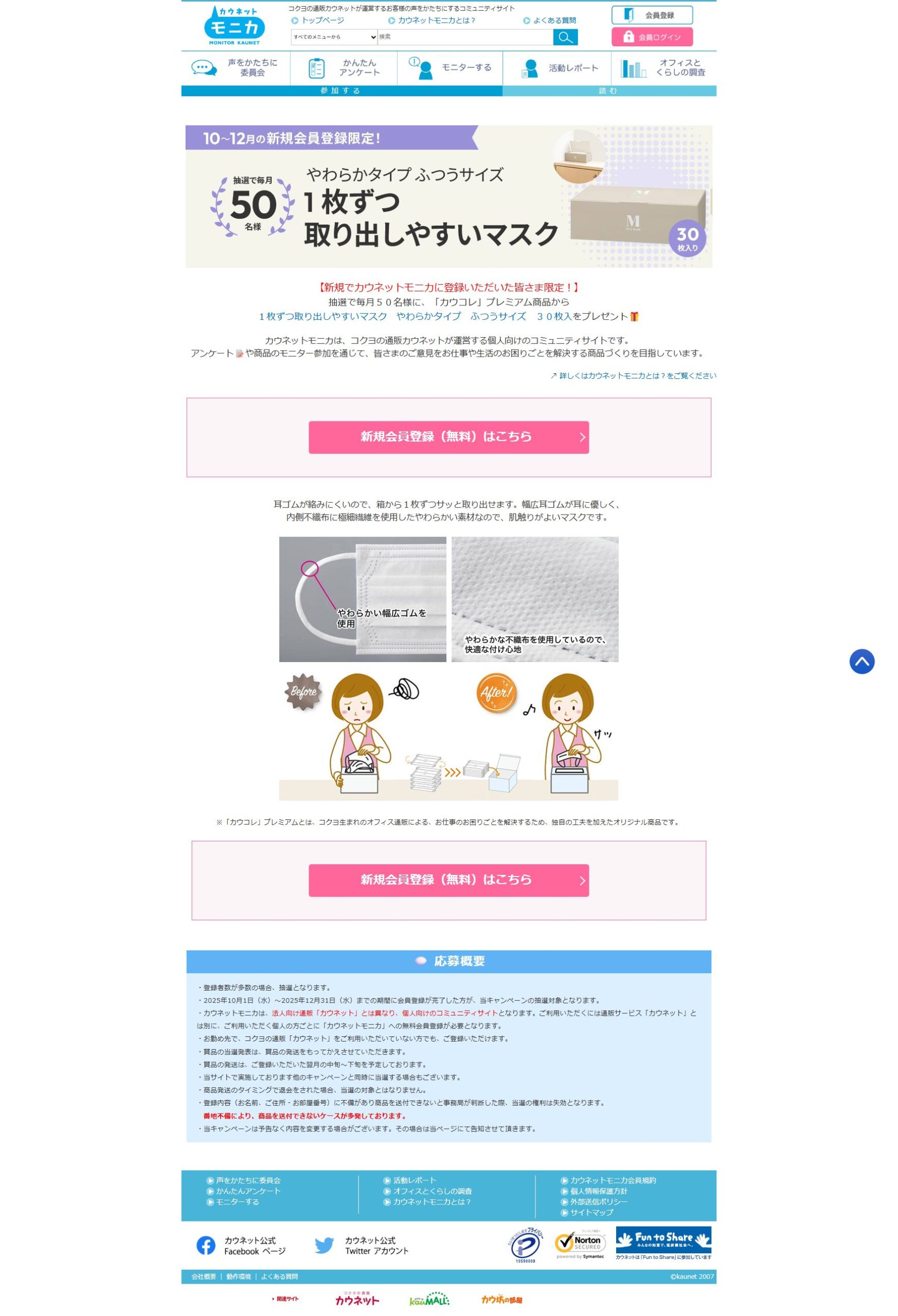 - 新規でカウネットモニカに登録いただいた方限定で毎月抽選で50名様にプレゼント