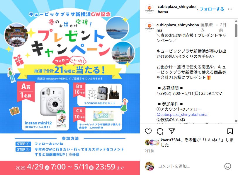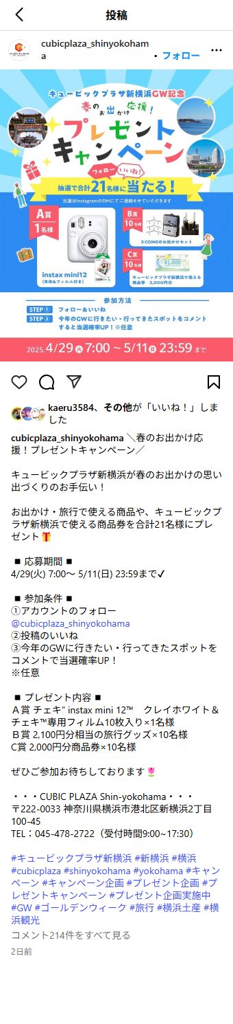 ①アカウントのフォロー @cubicplaza_shinyokohama