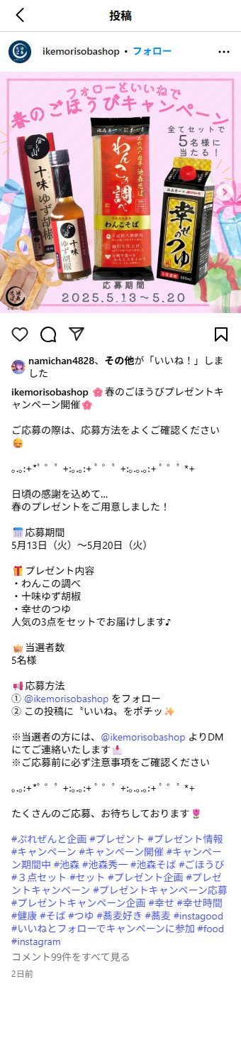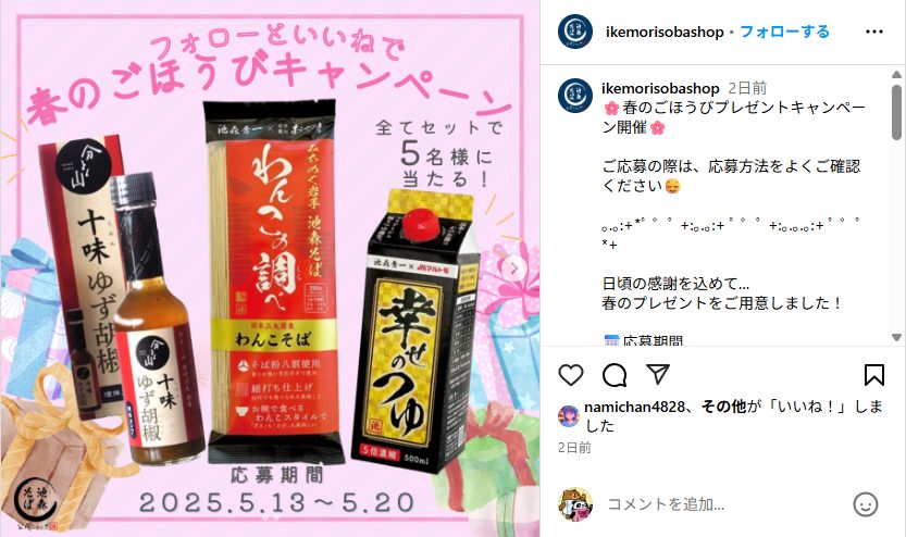 ① @ikemorisobashop をフォロー