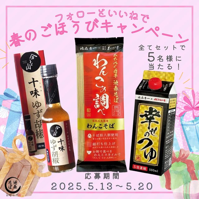 - ・わんこの調べ ・十味ゆず胡椒 ・幸せのつゆ 人気の3点をセット 5名様