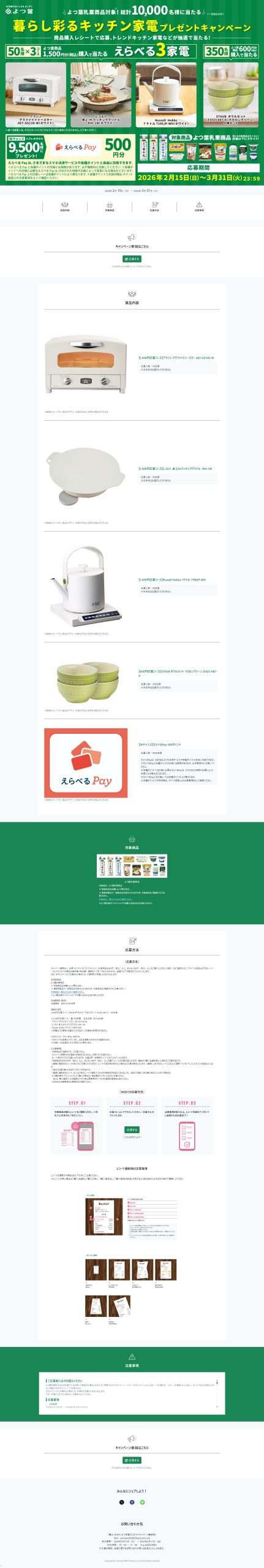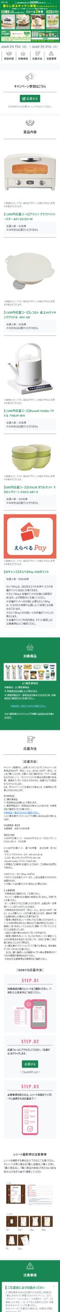 - 暮らし彩るキッチン家電プレゼントキャンペーン