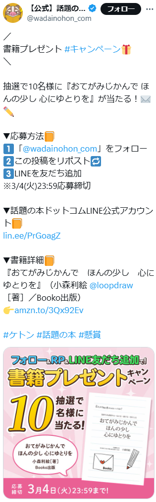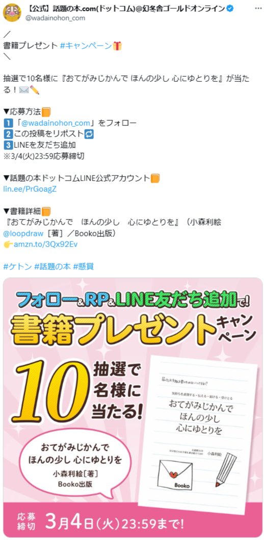 - 書籍『おてがみじかんで ほんの少し 心にゆとりを』 10名様