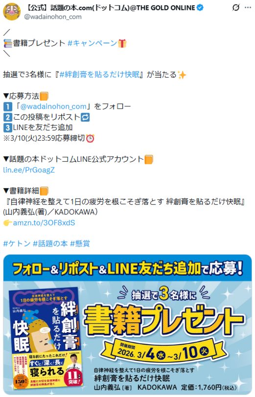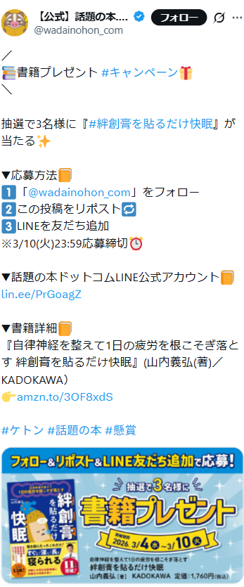 - 書籍『#絆創膏を貼るだけ快眠』 3名様