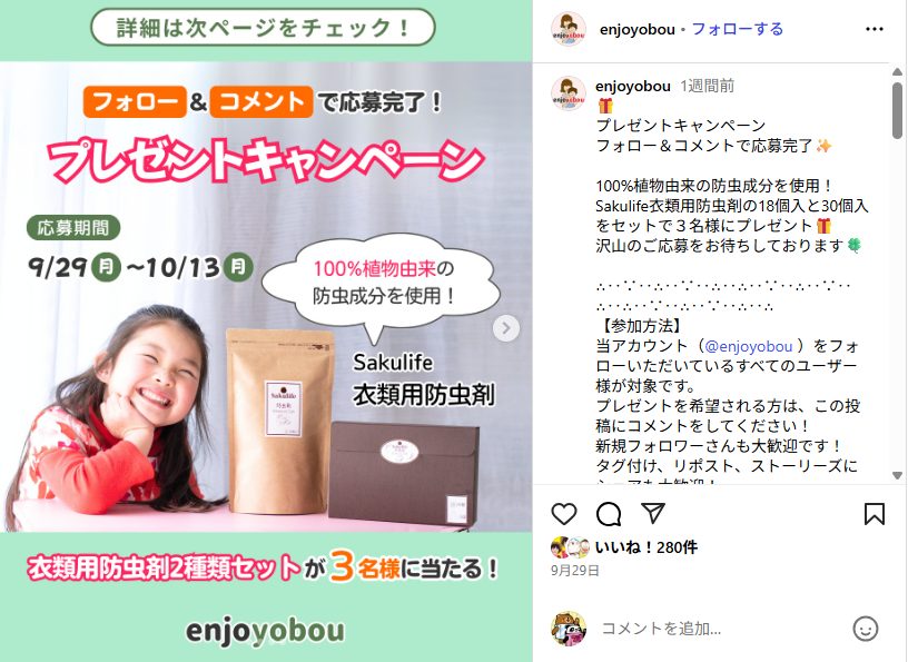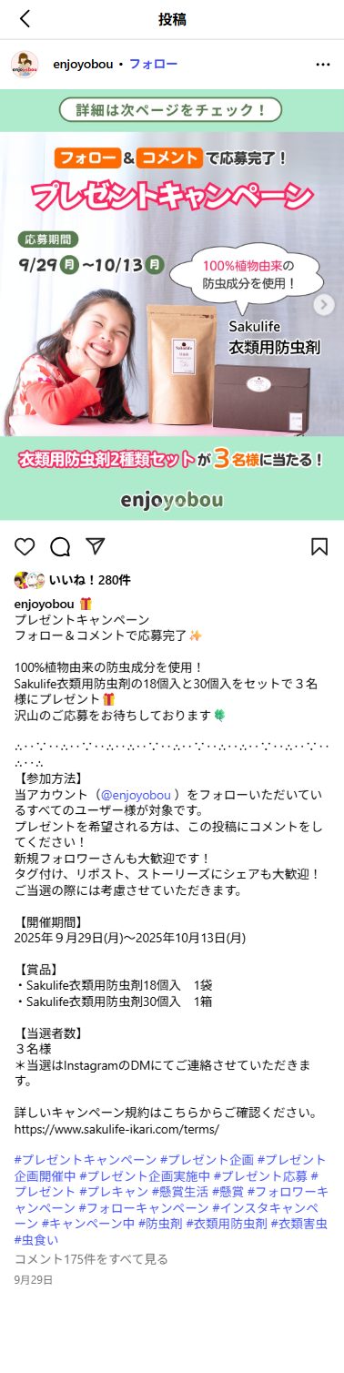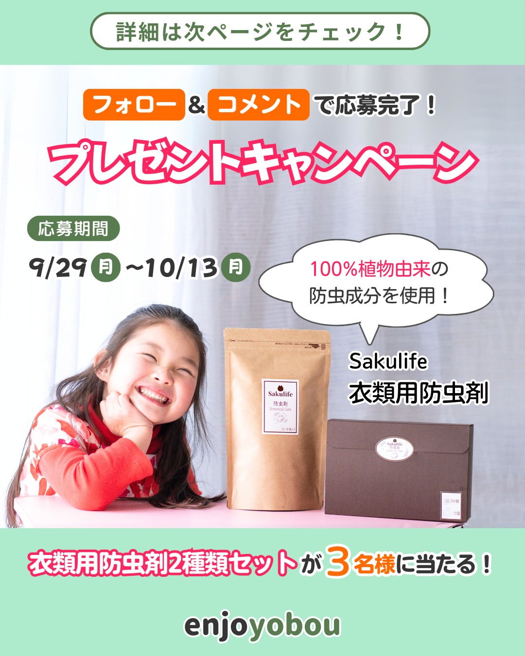 - 植物由来成分を使用した衣類用防虫剤が当たる!Instagramキャンペーン