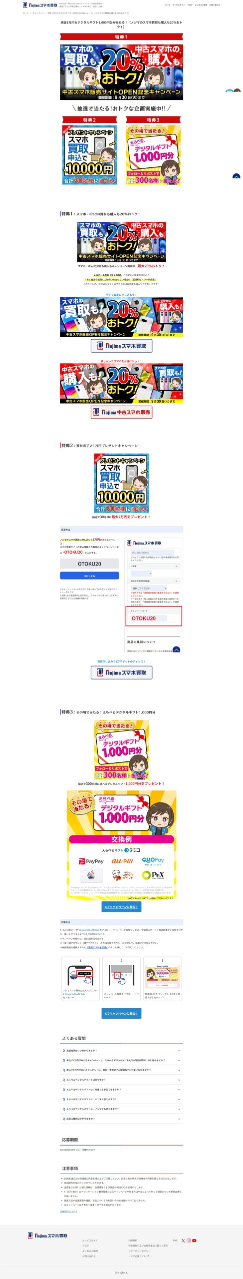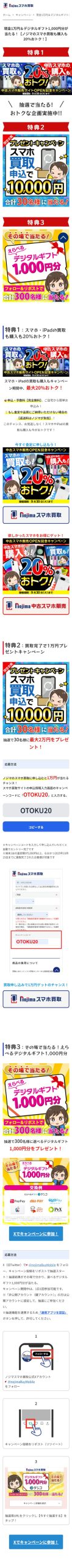 スマホ買取サイトの申込情報入力画面のキャンペーンコードに「OTOKU20」と入力する。