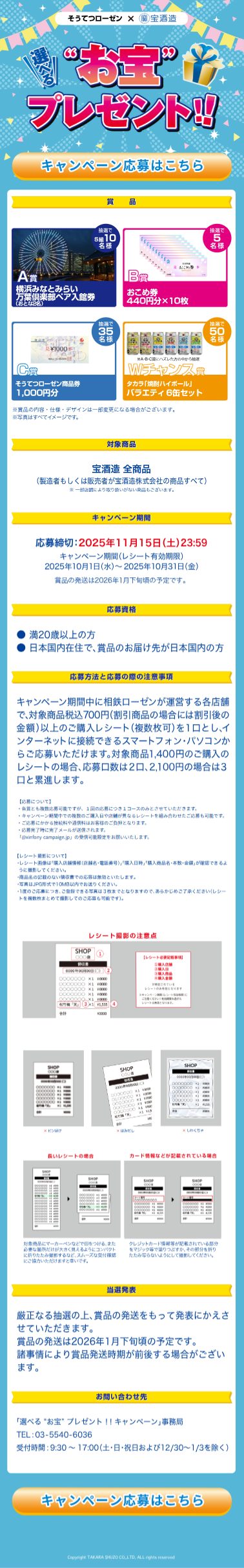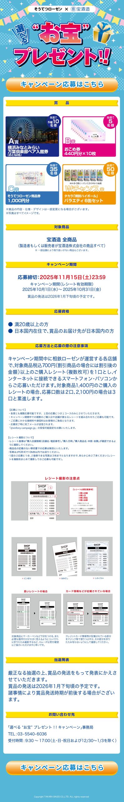 - 相鉄ローゼン・宝酒造 宝製品を買って当たる!選べる”お宝”プレゼント!!キャンペーン