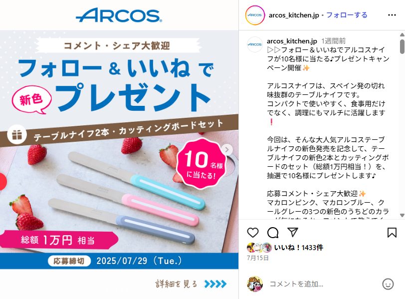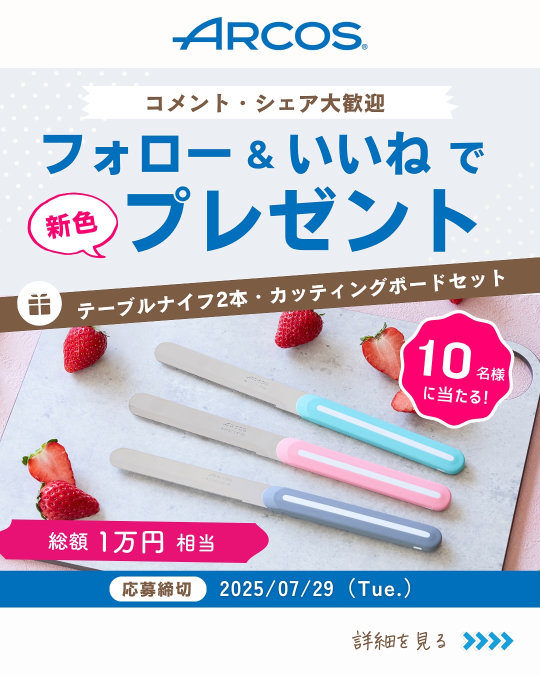 - 総額1万円相当!「テーブルナイフ2本&カッティングボード」が当たる♪Instagramフォロー&いいねキャンペーン