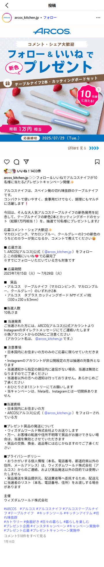 1. ARCOS(アルコス)公式( @arcos_kitchen.jp )をフォロー