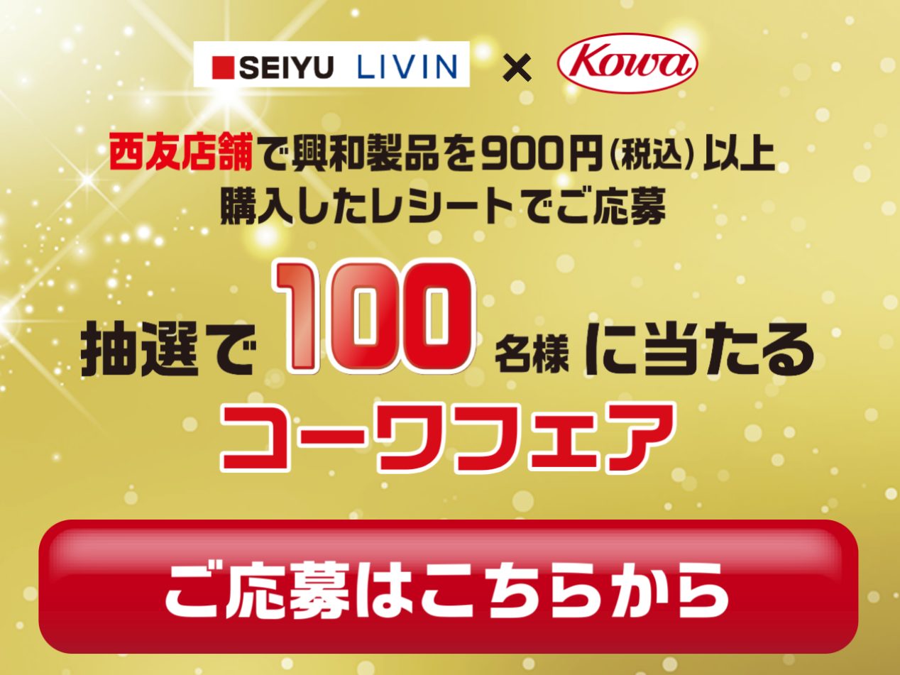 - キャンペーン期間中に西友が運営する各店舗で、対象商品税込900円(割引商品の場合には割引後の金額)以上のご購入レシート(複数枚可)を1口とし、インターネットに接続できるスマートフォン・パソコンからご応募いただけます。