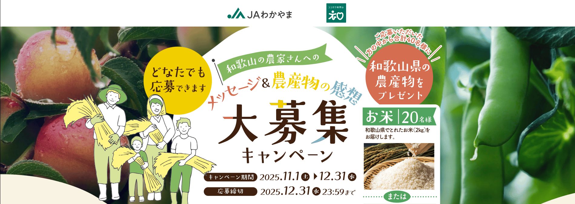 - LINEアプリをダウンロードし、「応募規約に同意して【応募する】LINEの友だちを追加」よりアクセスしていただき、本キャンペーンアカウント【ココ・カラ。和歌山キャンペーン】を友だち追加してください。本キャンペーンアカウントを友だち追加後、お客様のLINEにメッセージが届きますので、メッセージに従い、アンケートと農家さんへのメッセージを回答してご応募ください。