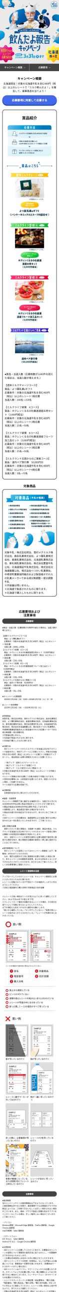 応募条件:対象の北海道牛乳を含む400円(税込)以上のレシート3枚応募