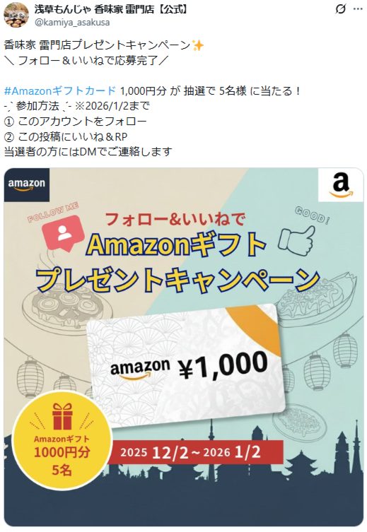 - 香味家 雷門店プレゼントキャンペーン✨