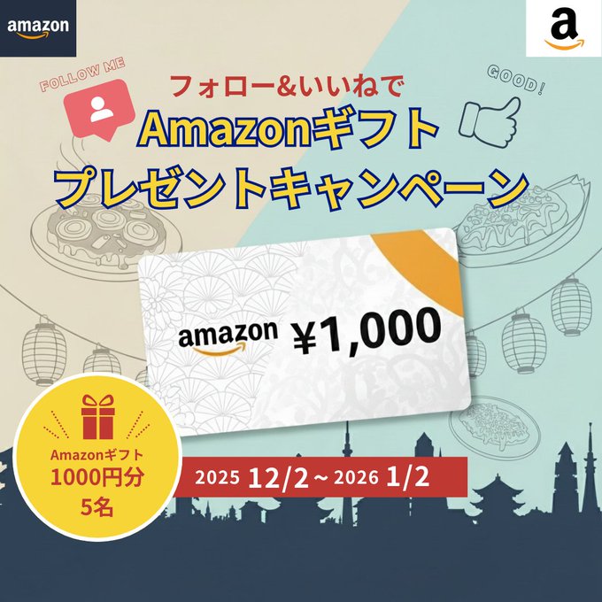 - Amazonギフトカード 1,000円分 5名様