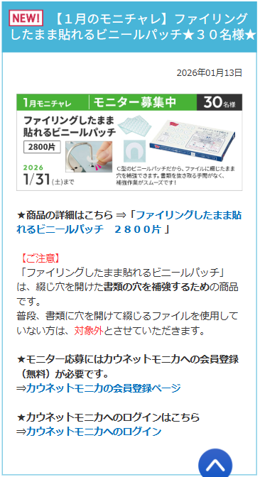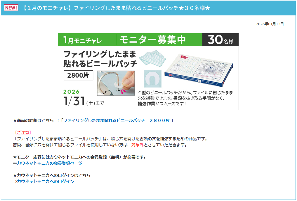 モニター応募にはカウネットモニカへの会員登録(無料)が必要です。