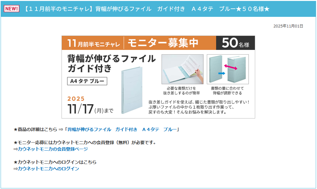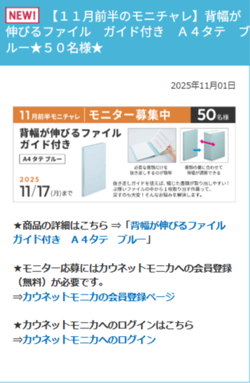 モニター応募にはカウネットモニカへの会員登録(無料)が必要です。