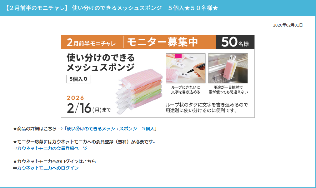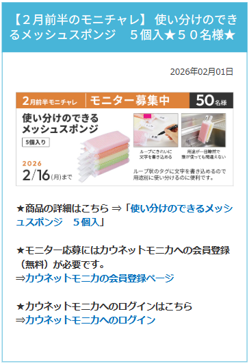 モニター応募にはカウネットモニカへの会員登録(無料)が必要です