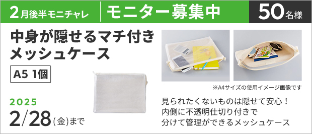 中身が隠せるマチ付きメッシュケース A5サイズ 1個 50名様