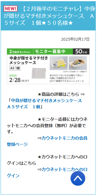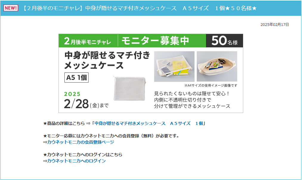 モニター応募にはカウネットモニカへの会員登録(無料)が必要です。