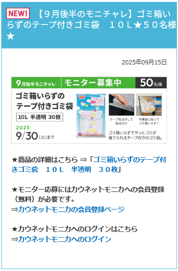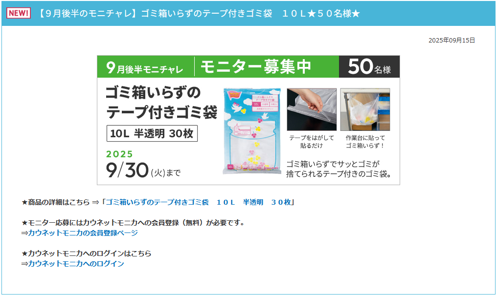 モニター応募にはカウネットモニカへの会員登録(無料)が必要です。