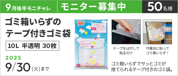ゴミ箱いらずのテープ付きゴミ袋 10L 半透明 30枚 50名様