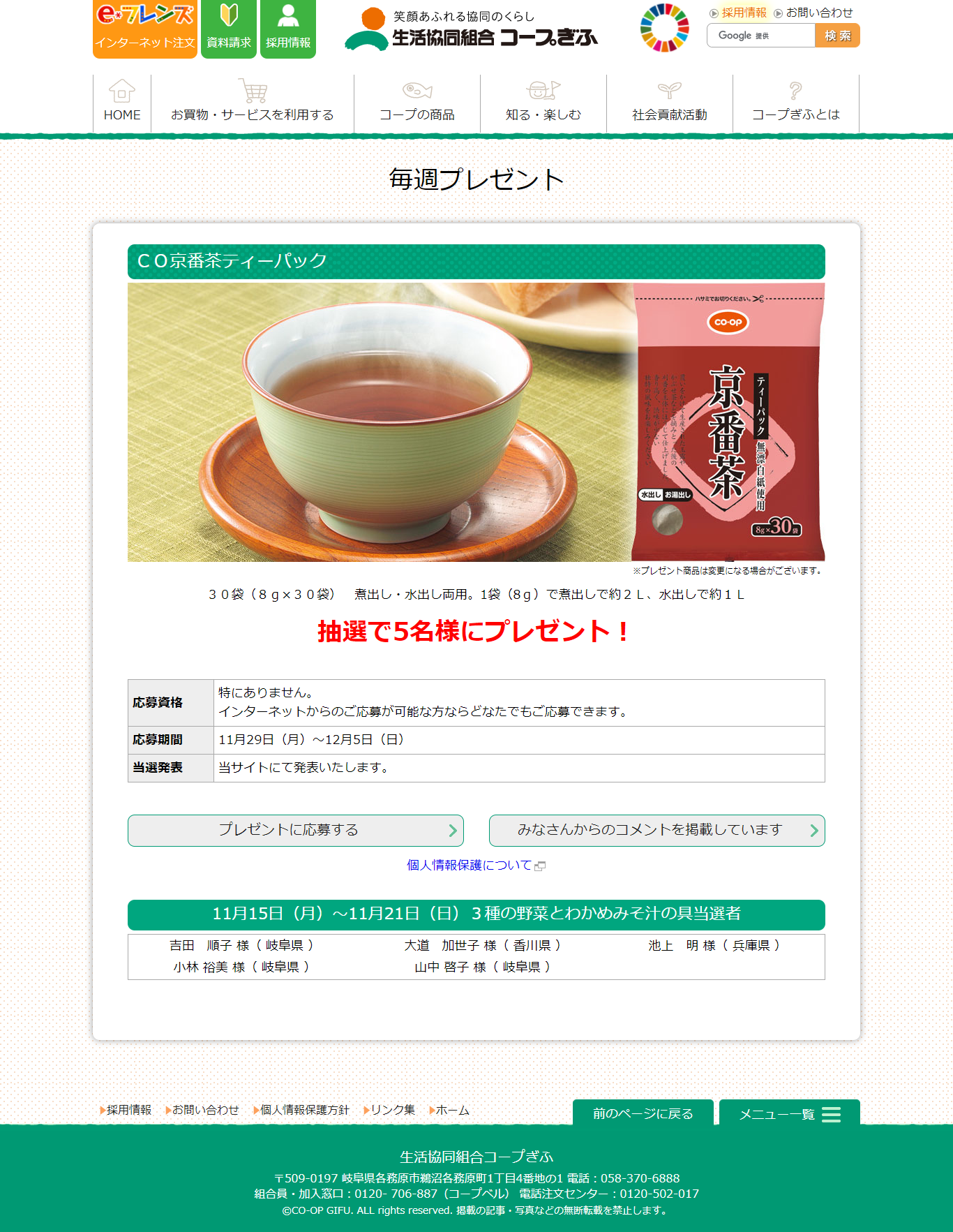 - CO京番茶ティーパック 抽選で5名様にプレゼント!