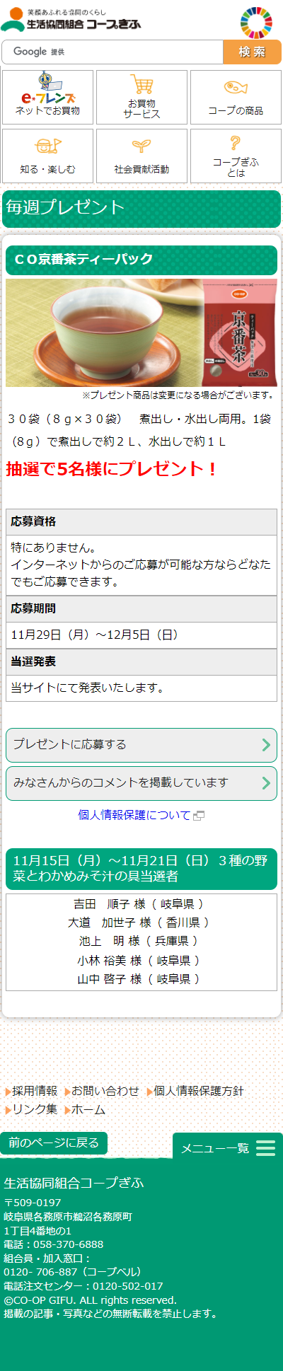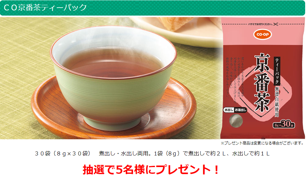 - CO京番茶ティーパック 抽選で5名様にプレゼント!