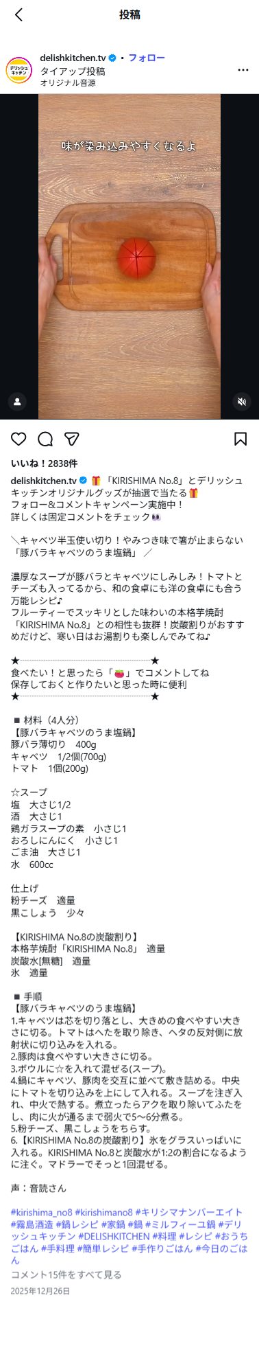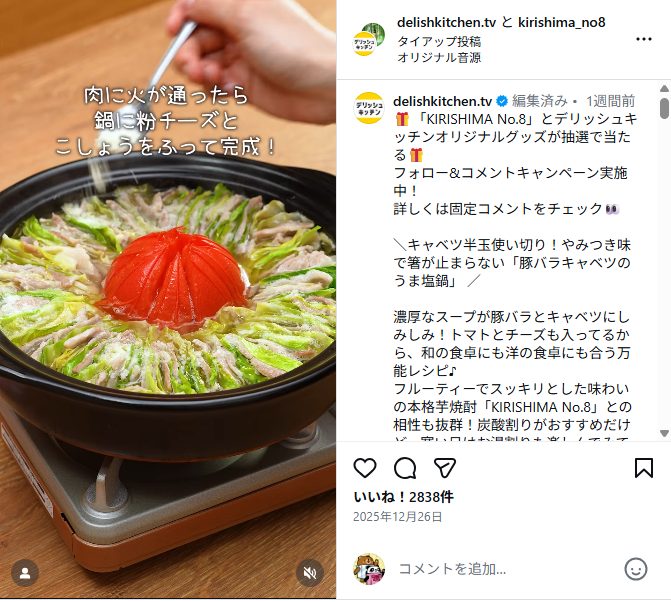 1. @delishkitchen.tv と @kirishima_no8 2つのアカウントをフォロー