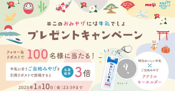 - 明治おいしい牛乳×ご当地みやげキーホルダー 100名様