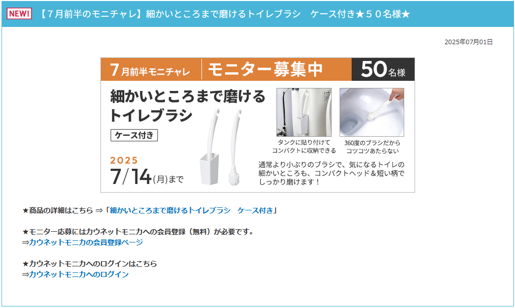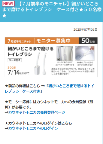 モニター応募にはカウネットモニカへの会員登録(無料)が必要です。