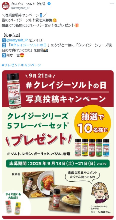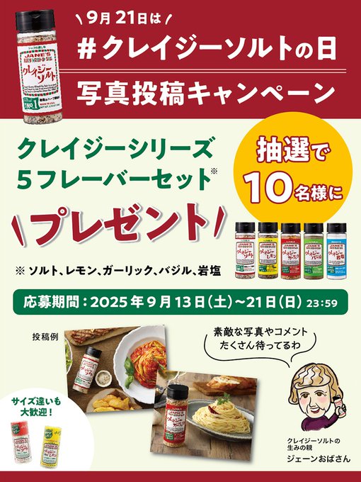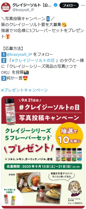 - 9月21日は「#クレイジーソルトの日」写真投稿キャンペーン