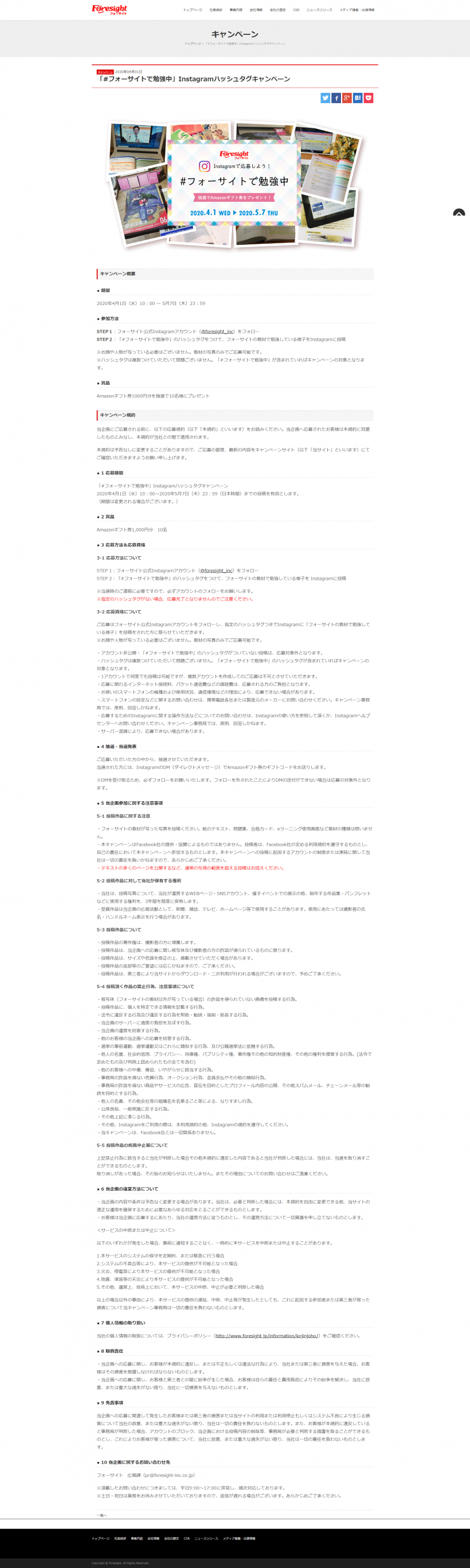 【株式会社フォーサイト】「#フォーサイトで勉強中」Instagramハッシュタグキャンペーン