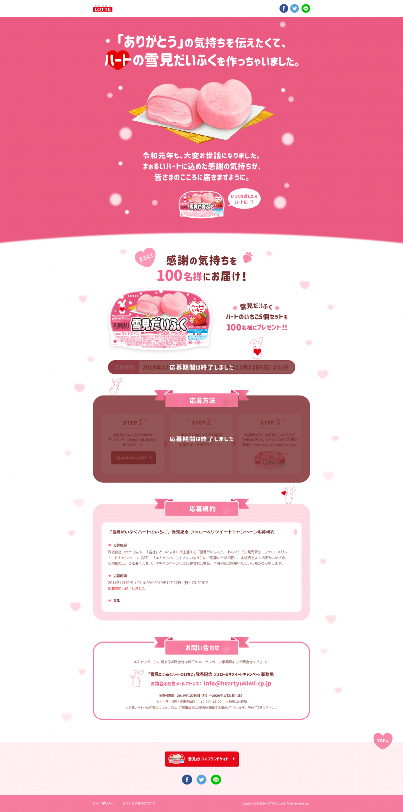 【株式会社ロッテ】「雪見だいふくハートのいちご」発売記念 フォロー&リツイートキャンペーン