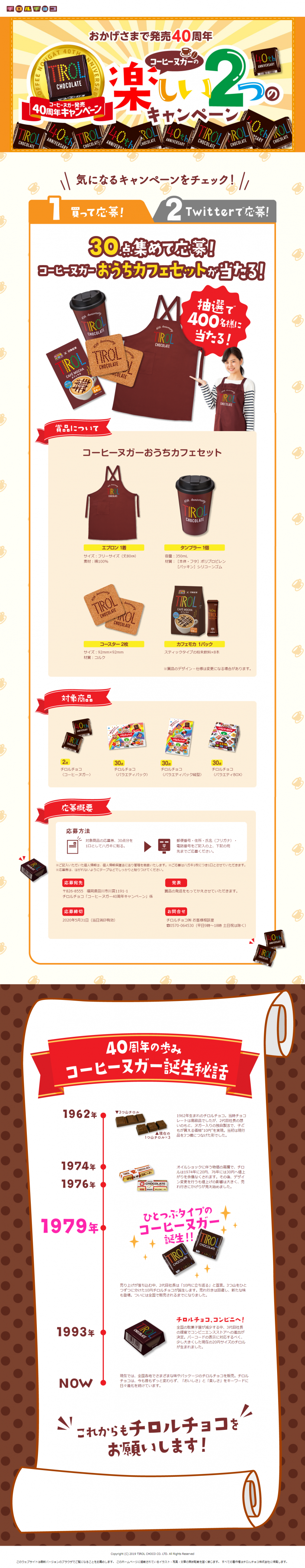 【チロルチョコ株式会社】コーヒーヌガー発売40周年キャンペーン
