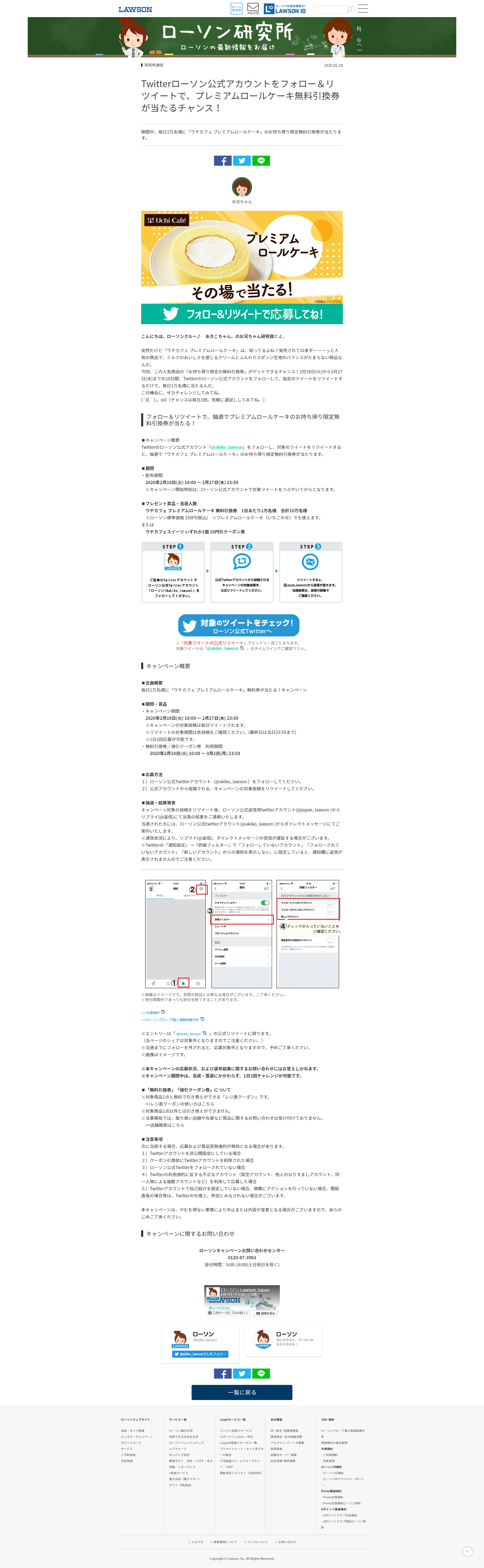 【ローソングループ】フォロー&リツイートで、抽選でプレミアムロールケーキのお持ち帰り限定無料引換券が当たる!