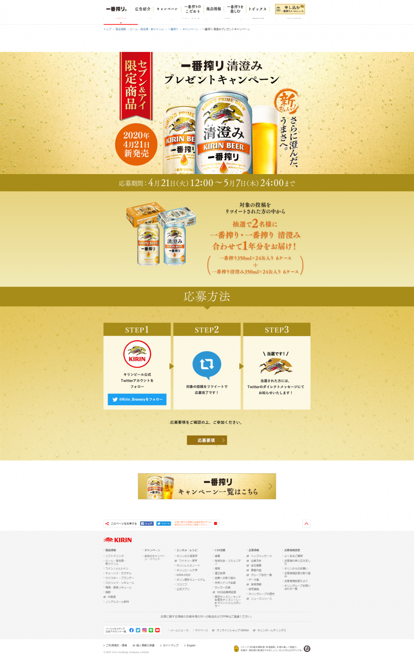 【キリンビール株式会社】一番搾り 清澄みプレゼントキャンペーン